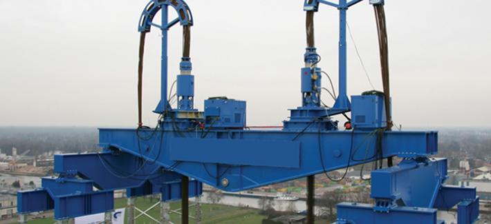 美國(guó)阿拉巴馬Enerpac B-Set直線式自提升拉錨油缸門式起重機(jī)將拉錨油缸與門式起重機(jī)和滑移技術(shù)相結(jié)合,提供了一個(gè)集成、自行站立的重型提升和下放解決方案。該方案采用標(biāo)準(zhǔn)集裝箱進(jìn)行運(yùn)輸,在地面進(jìn)行自動(dòng)安裝和拆卸,僅在升高塔機(jī)之前需少量起重機(jī)作業(yè)提升頂梁。這樣就形成了了一套 2,400 噸×80米的解決方案,以較低的成本在動(dòng)態(tài)環(huán)境中實(shí)現(xiàn)快速、安全地安裝。
